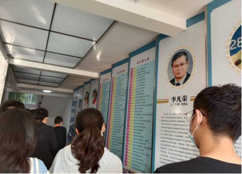 在场馆解说员的带领下,学院以每2个班级为单位,分6批次有序进入场馆参观。在场馆一楼,同学们首先了解到我校海内外的优秀校友代表,鼓励同学们以他们为榜样,学习名人精神,争做时代引领者。