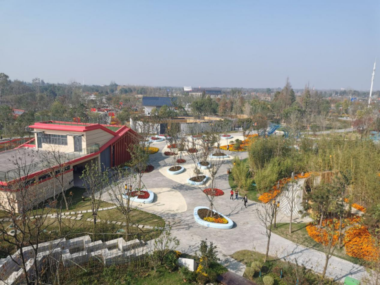 江山如画,美在荆州,园内景色美不胜收。到达目的地后,学生们纷纷驻足与美景合影留恋。随后在辅导员的带领下,从北门站出发,漫步走过祝融桥,迎面而来的是市州展园。17个各具特色的市州展园,以“楚韵”为主题展现湖北特色地景,荆楚特色文化,其中最引人注目的当属以“楚耕”为主题的展园。该展园已荆楚鱼米之乡为文化载体,因地制宜,利用“渔情”水中游亭、“乡忆”水乡聚落、“耕技”水车栈道等景观特点,让同学们如身临其境,感受荆楚园林水乡特色和人文自然魅力。