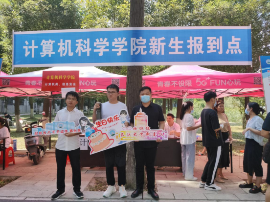9月4日中午,两名生日在9月4日、5日的新生计科类32106班龚静文、计科类32105秦少江来校报到,学校为两名新生送上了精美的生日礼物。