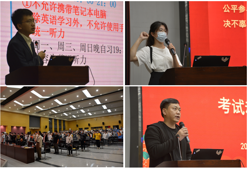 紧接着,21级辅导员张颖旭公布了学院《2021级最新早晚自习管理办法》,并指出早晚自习考勤与综合测评直接关联,呼吁同学们认真对待早晚自习,不要在该奋斗的年龄选择安逸。随后,计科类32102班的高昕同学带领同学们进行了备战四级暨诚信考试宣誓。在同学们高涨的热情中,大会逐渐接近尾声。最后,由学院党委副书记颜学俊宣读《永利集团y234552021级本科生英语四级奖励办法》并做总结讲话。至此,本次大会圆满结束。