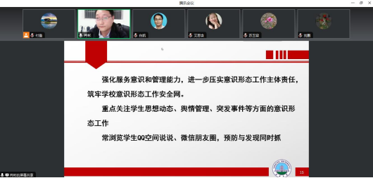 本次工作会议肖彬副书记主要从“日常管理及安全稳定、心理健康教育工作、就业工作、学业情况、意识形态工作”等五个方面对班主任老师提出了工作要求,通过结合我院学生工作的特点和具体事例,为我院学生定制了一套全面的关心方案和安全防护措施。