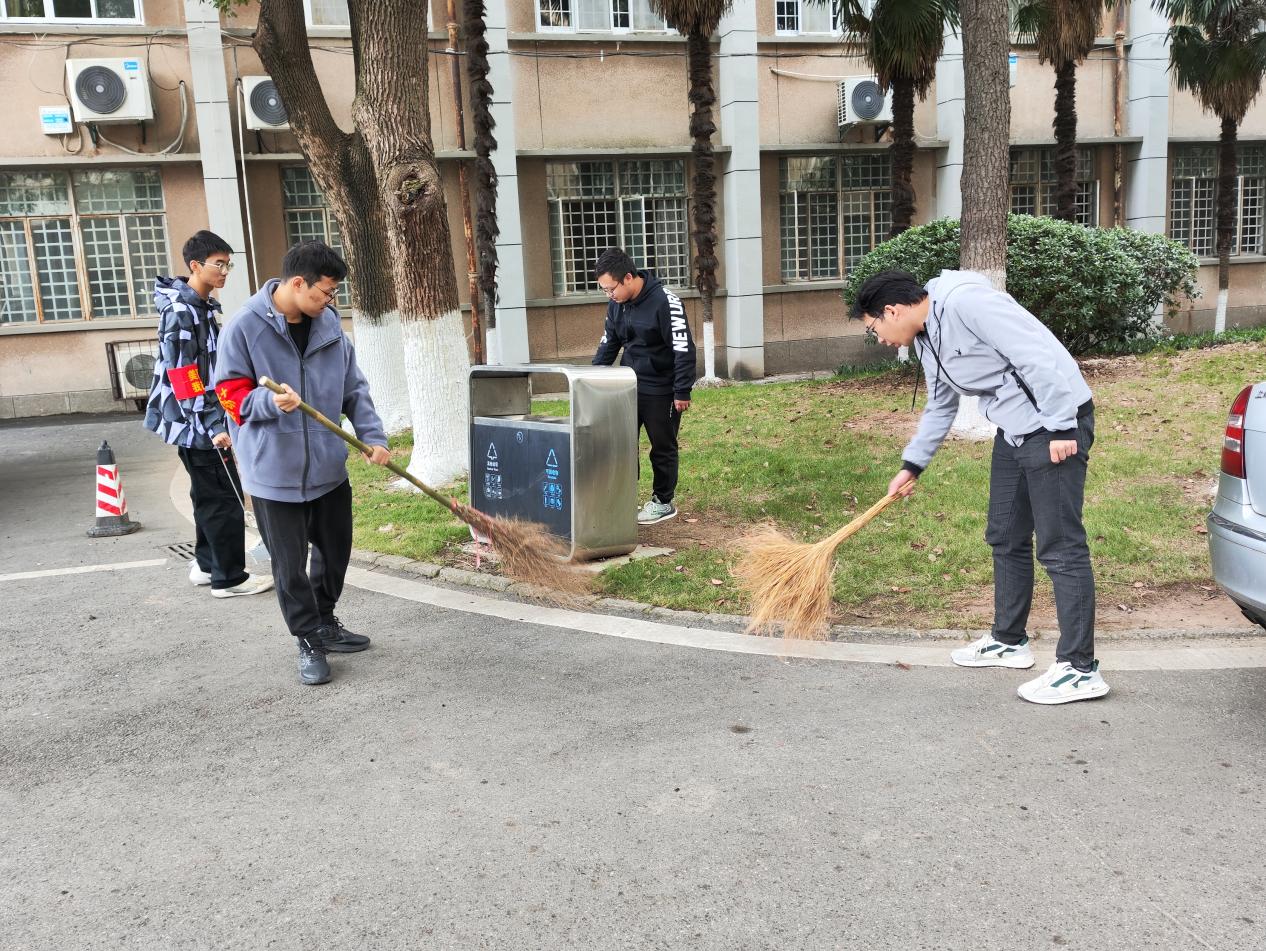 在学院负责老师的带领下,同学们手拿工具,分工明确,热情投身于清扫工作中,用实际行动维护校园秩序。