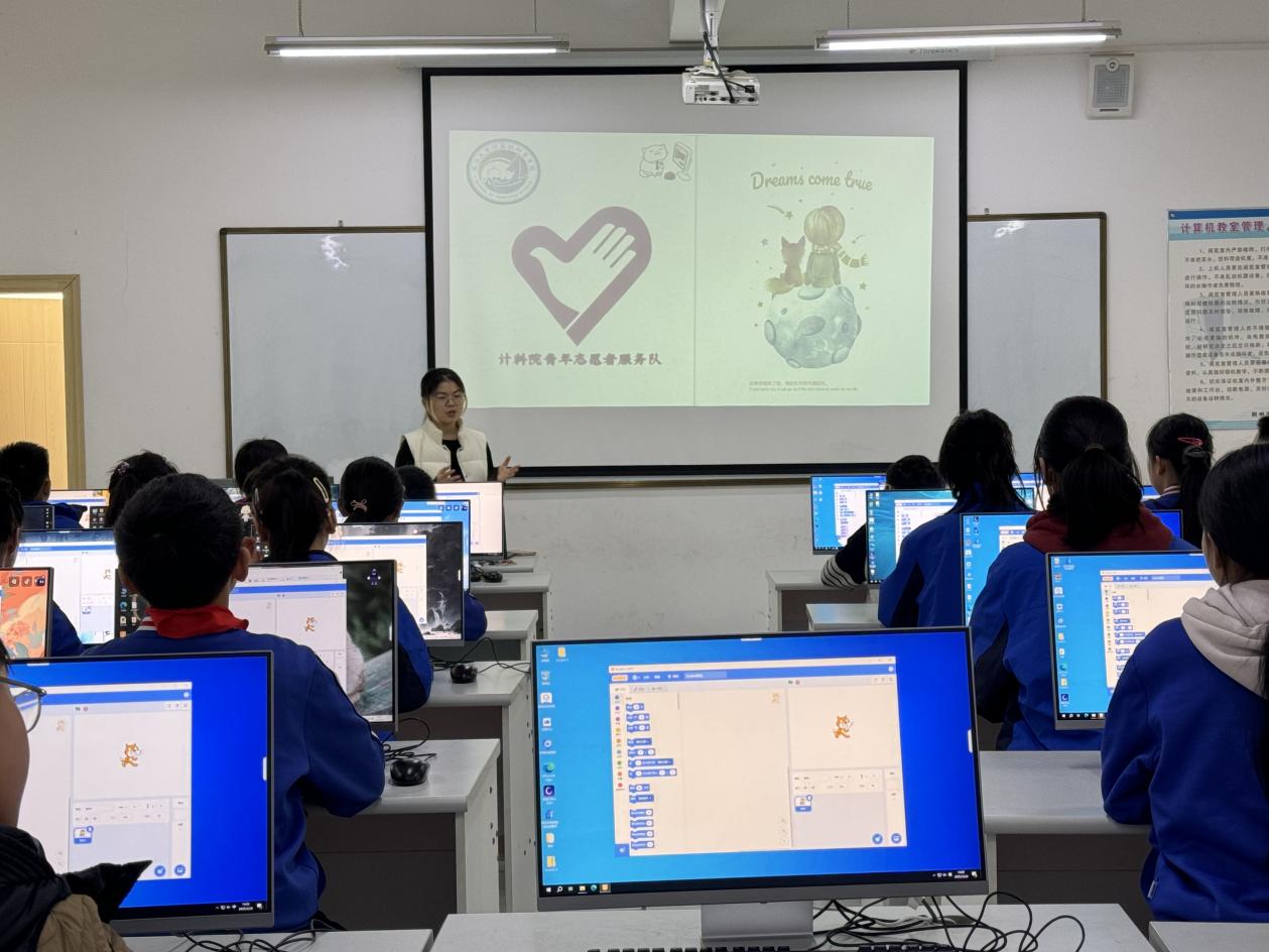“快看!我的坦克发射炮弹啦!”3月20日,在荆州市沙市实验小学的计算机教室里,六年级的孩子们兴奋地拍手。永利集团y23455青支队的志愿者们开展了一场以“编程启蒙,智创未来”为主题的支教活动,正通过趣味化教学点燃孩子们的科技热情。