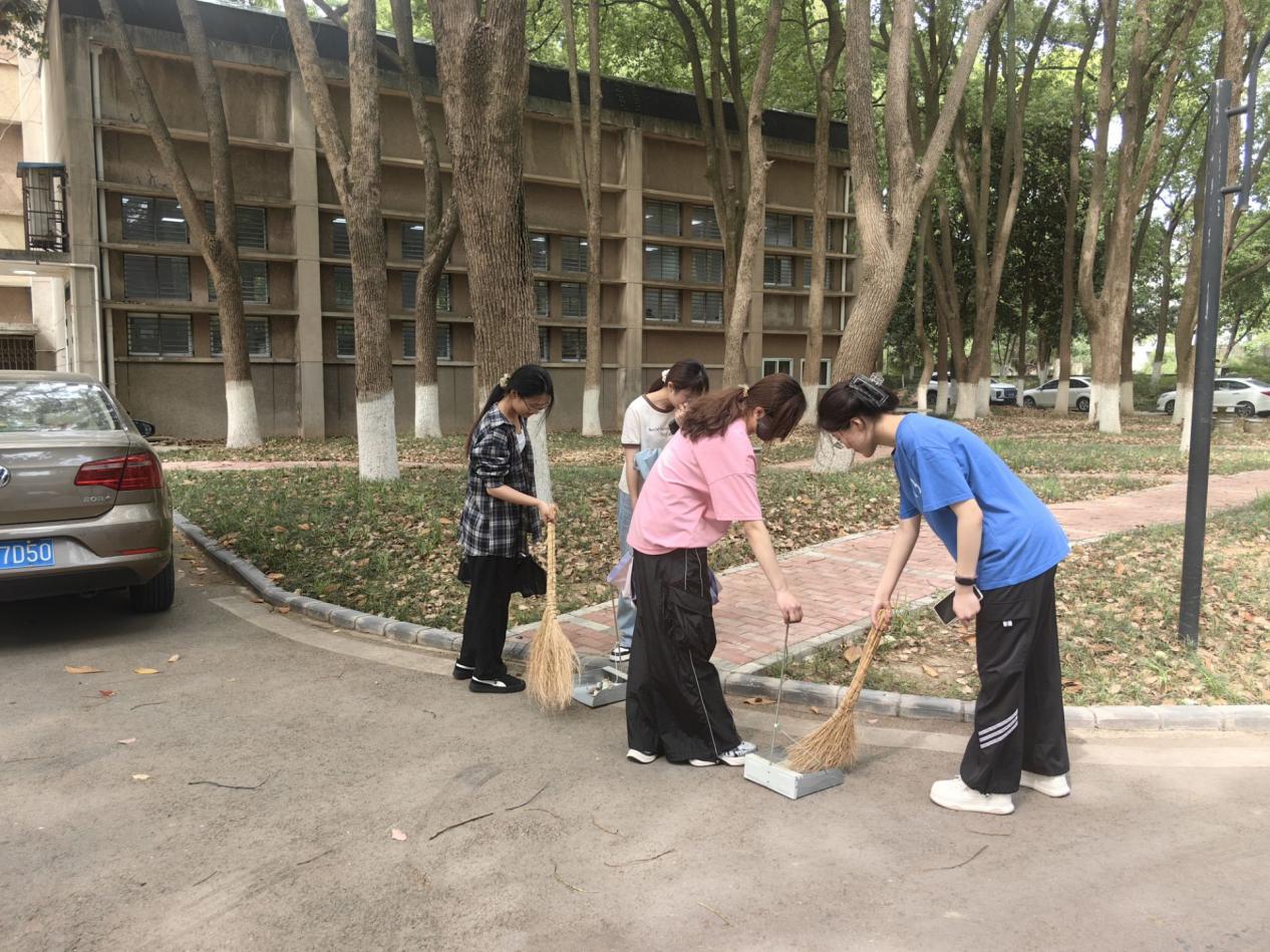 在学院老师的引导下,学生们于楼前整队完毕,依次接过扫帚、垃圾夹、垃圾袋等清洁工具。教学楼前,他们俯身细致地捡拾烟头、碎纸屑;在绿化带中,他们戴上手套认真清理杂草,细心翻找隐藏的塑料袋。扫帚划过地面的沙沙声、夹子开合的咔嗒声、布袋摩擦的窸窣声,在春日校园里织成一曲劳动的协奏曲。