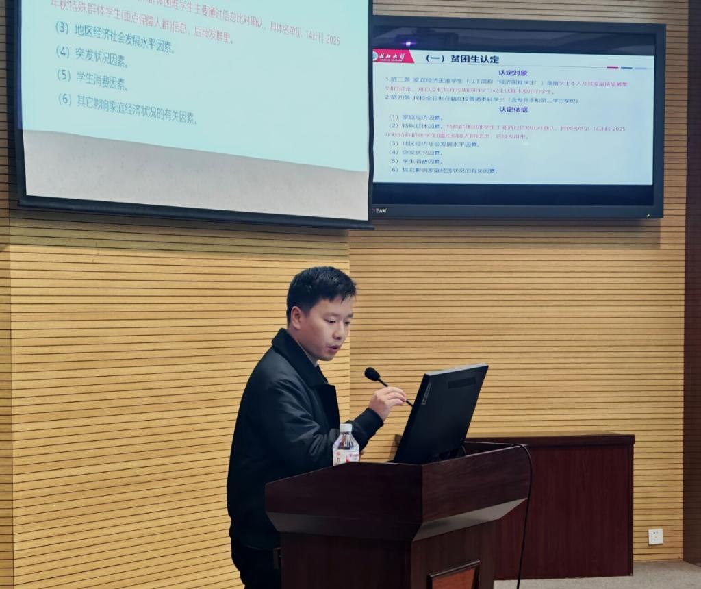 此外,辅导员蒋代运针对副班长开展专项培训,详细讲解助学金申请的流程规范、材料要求及注意事项,为后续资助工作有序推进奠定基础。