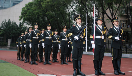 7点,升旗仪式正式开始。伴随着雄壮的《义勇军进行曲》,五星红旗冉冉升起,全体师生肃立注目,心怀崇敬与使命感,在晨光中共同见证这一庄严时刻。