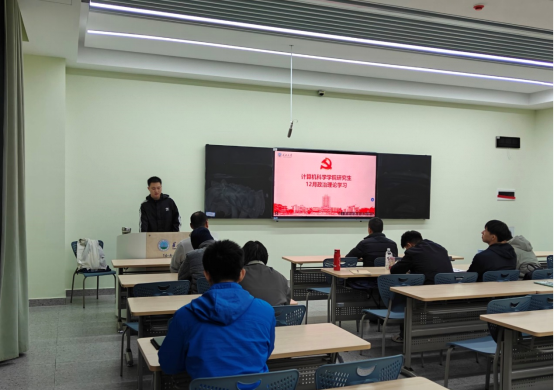 12月22日下午,学院研究生党支部在16教A105开展了2025年12月政治理论学习活动,本次活动由研究生党支部书记付盈老师主持。
