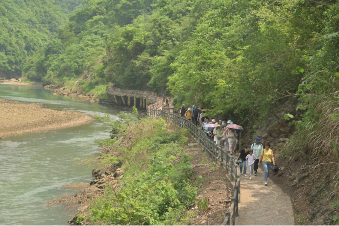 午后,大家前往景区观景平台,俯瞰卸甲坪景区全貌,拍摄美丽的风景照片,留下难忘的回忆。接着前往黄林古桥和牛车档瀑布参观,两者相映成趣,为我们的踏青之旅增添了很多趣味。