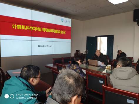 12月24日下午,学院在5教501会议室开展了师德师风建设会议,本次会议由学院党委书记高明成同志主持,学院全体教师参加了此次会议。