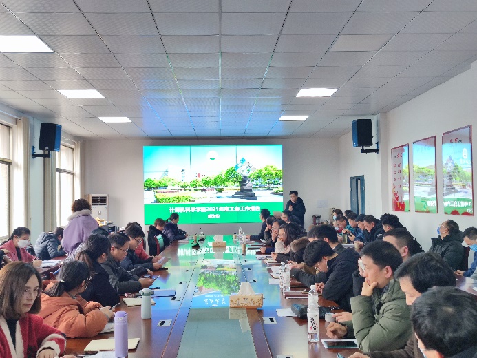 会上,工会主席颜学俊作2021年度工会工作报告,回顾了一年来工会在履行工会职能、落实职工福利、开展日常工作、改善学院环境、开展文体活动、经费专款专用等方面的情况,并总结了工作中存在的主要问题和今后努力的方向。
