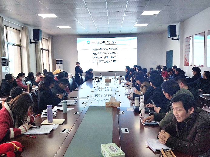 院长崔艳荣作2021年度学院工作报告,她从重公开、抓常规、谋发展、重建设四个方面总结了学院一年来取得的喜人成绩,分析了学院目前存在的问题,提出了学院2022年的工作重点。
