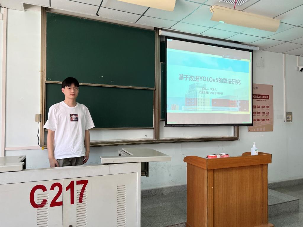 袁浩文同学报告主要内容是基于改进YOLOv5的算法研究,阐述了YOLOv5实时目标检测算法的优缺点,并给大家介绍了两个改进方向:增强小目标检测和增强多尺度目标检测。通过对主干网络的改进,实现对不同类型目标的检测准确率提升。