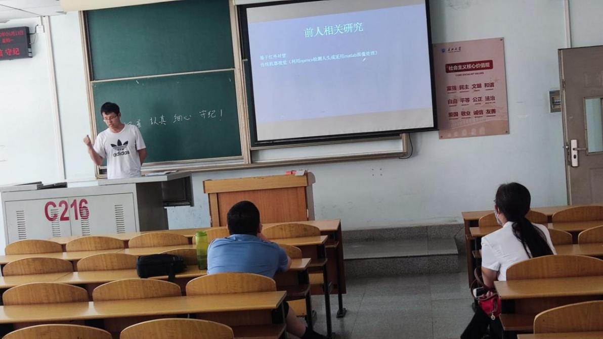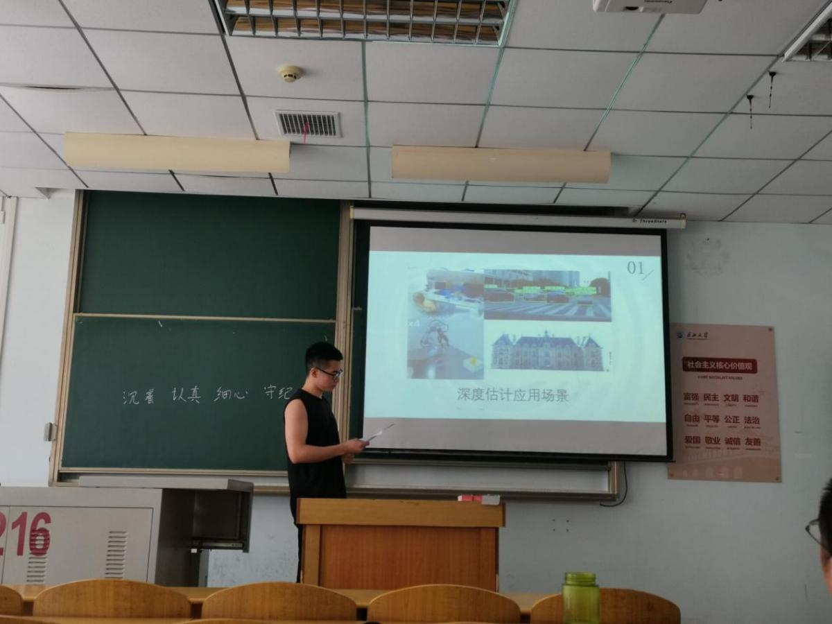 永利集团y234559位研究生依次登台演讲,分别围绕各自的研究方向,为同学们分享了9个课题:葡萄糖霜霉病检测分级、基于深度学习的深度估计算法研究、改进YOLOV5的口罩检测算法、基于改进YOLOV5的安全帽佩戴检测算法、牛奶智能装载算法项目设计实现、基于深度学习的教室智慧节能控制系统设计、基于时间序列的水位预测、测井曲线分层方法研究、基于顺序置乱和三角扩散的彩色图像加密算法等内容。学术论文报告会已经成为同学们知识共享和传播的一种重要方式,在演讲过程中,导师与听众和演讲人针对相关研究成果互动、探讨。每名研究生演讲完后,两位导师从全方位对演讲学生的汇报进行仔细点评,对其研究内容可能遇到的科研困难进行指导,通过点评有效促进了研究生的成长。