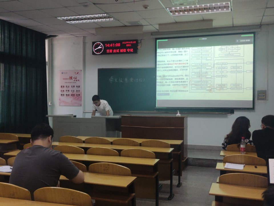 永利集团y234559位研究生依次登台演讲,分别围绕各自的研究方向,为同学们分享了9个课题:硬盘诊断技术研究、基于VQ-Diffusion的文本到图像合成、基于YOLOv5的目标检测研究、基于YOLOv5和DeepSort的目标识别及追踪、基于MapReduce的股票数据聚类分析、图卷积神经网络及应用、深度强化学习在移动边缘计算的任务卸载研究、基于知识图谱的问答系统、基于YOLOv5的大豆豆荚和茎秆的识别等内容。学术论文报告会已经成为同学们知识共享和传播的一种重要方式,在演讲过程中,两位导师与听众和演讲人针对相关研究成果互动、探讨。每名研究生演讲完后,两位导师都从更加深入的角度对演讲学生的汇报进行仔细点评,对其研究内容的下一步行动进行了探究,通过点评有效促进了研究生的成长。