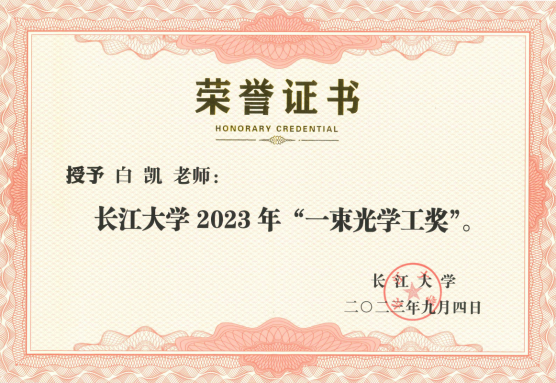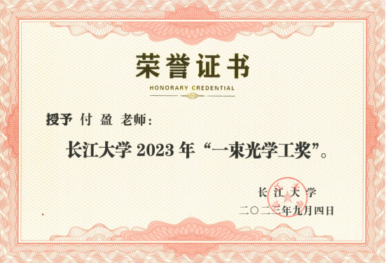 白凯、付盈两位老师荣获yl23455永利集团2023 年“一束光学工奖”