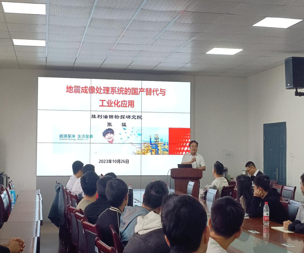 (通讯员 余珺瑞 那诗悦)10月27日上午,永利集团y23455在东校区5教501会议室举行“长大20年〞学术论坛暨计科讲坛(2023年第十七讲),yl23455永利集团勘查技术与工程专业2003届校友、胜利油田物探研究院首席专家的张猛以《地震成像处理软件的国产替代与工业化应用》为题作专题报告。报告会由学院党委书记郑健主持,胜利油田物探研究院信息技术室副经理史进、胜利油田物探研究院组织科主办王钟远,以及永利集团y2345560余名师生现场聆听了报告。