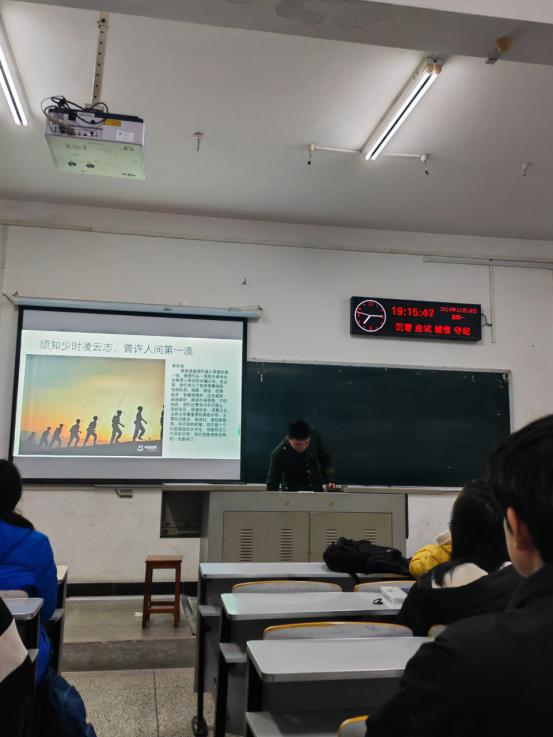 随后,征兵宣讲员崔姊威同学结合自己在部队的成长和淬炼经历,为同学们讲述了参军期间的感受,鼓励同学们正确认识参军意义,敢于追求梦想,肩负保家卫国的神圣使命。宣讲结束后同学们进行现场提问,宣讲员针对同学们的问题进行一一解答。