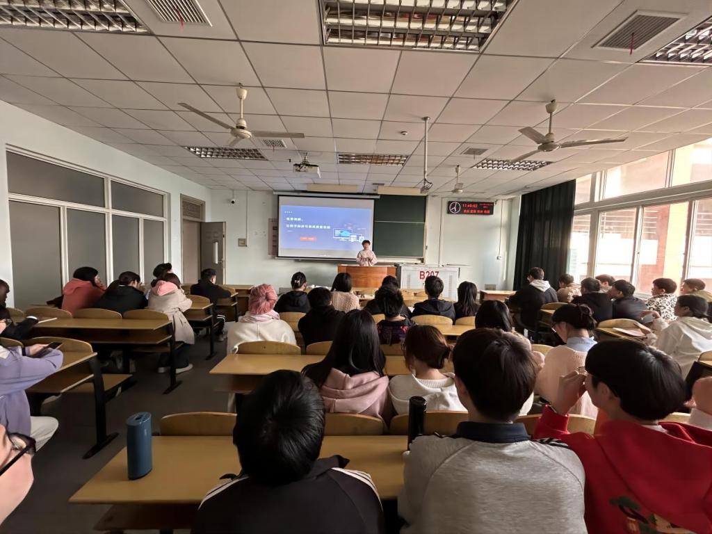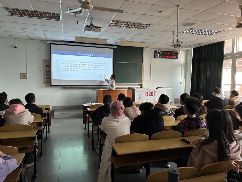 院长崔艳荣以此为切入点,向同学们深入浅出地讲解了数字经济内涵要义、发展原因、目前现状和未来发展。她勉励同学们:当今中国正处于政治最稳定、经济最繁荣、创新最活跃的时期,实现科技强国、数字中国的梦想是大势所趋,任何力量都不能阻挡。展望未来,只要同学们坚定信心、砥砺奋进,时不我待、只争朝夕,走好新时代科技自立自强之路,就一定能实现自我价值,勇攀科技高峰。