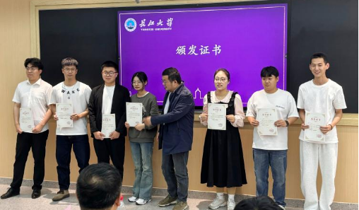 随后,化学与环境工程学院肖围老师为各位主讲人颁发了“优秀主讲人”证书,并合影留念。