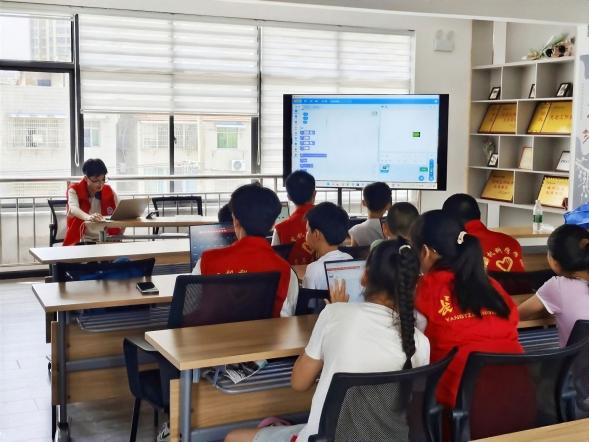“筑梦”社会实践队走进十方庵社区,开设“爱心托管班”,为7–12岁留守儿童提供7天全天候陪伴。课程以“作业辅导+科技启蒙+生态教育”三线并进——作业时段,志愿者一对一拆解数学难题、梳理作文框架,并发放“每日学习清单”,手把手教孩子制定计划、管理时间;科创时段,借助图形化编程与创意遥控车拼装,把“小游戏设计”“齿轮传动”搬进课堂,让抽象原理“活”起来,点燃探索热情;生态科普时段,携手生命科学学院开展 “关注生态・守护生命” 活动,普及濒危动物保护与生物多样性知识,培养环保意识。
