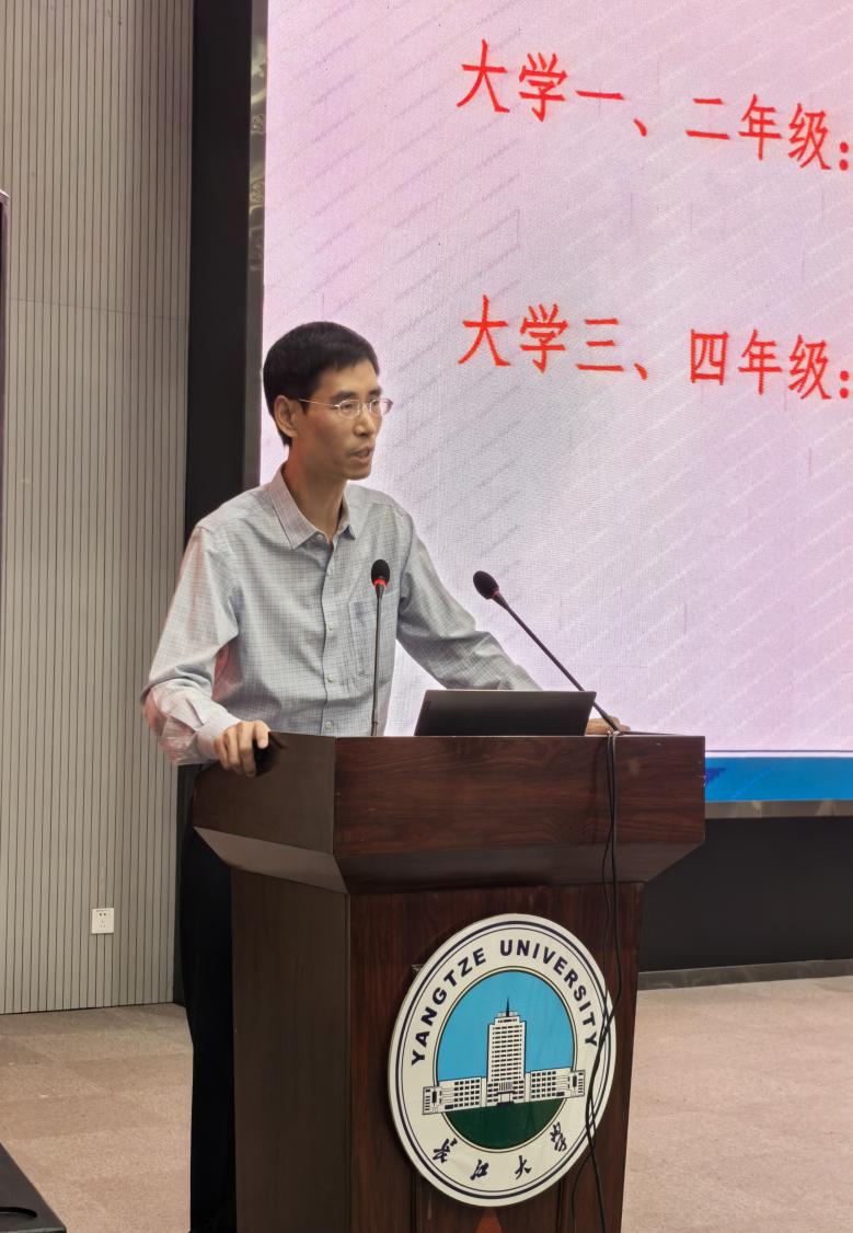 分管本科生教育的副院长陈中举随后作专业建设报告。他从专业设置、课程体系、培养目标三个维度展开,详细解读了各专业人才培养方案,并结合学院2025届优秀毕业生分享会案例,系统介绍了本科生在就业创业、考研保研、考公考编等方面的多元发展路径,并强调学院将持续深化校企合作,通过共建实习基地、企业导师带教项目开发、真实业务场景实战等形式,为学生搭建“校园技术学习—行业岗位实践—就业创业衔接”的完整链条。