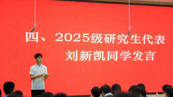 随后,2023级研究生代表林沐雨分享了个人在科研实践与学业探索中的心得,鼓励学弟学妹们以“不畏挑战、勇于探索”的态度,扎实走好研究生阶段的每一步;2025级研究生代表刘新凯表态,将以饱满的热情、务实的作风投入未来的学习与科研,不负学院与导师的期待。