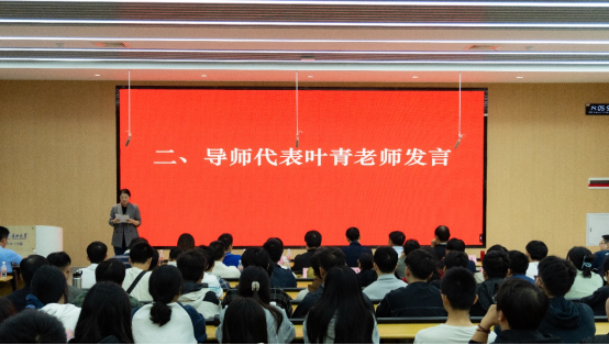 本次典礼分为“拜师仪式”与“教育规划”两大阶段,流程紧凑、意义深远。在第一阶段,研究生导师代表叶青副教授率先致辞。她以AlphaGo的技术发展历程为切入点,寄语新生既要深耕学术根基、传承学科传统,也要敢于突破思维定式、勇闯科研新领域,始终坚守投身计算机学科研究的初心。