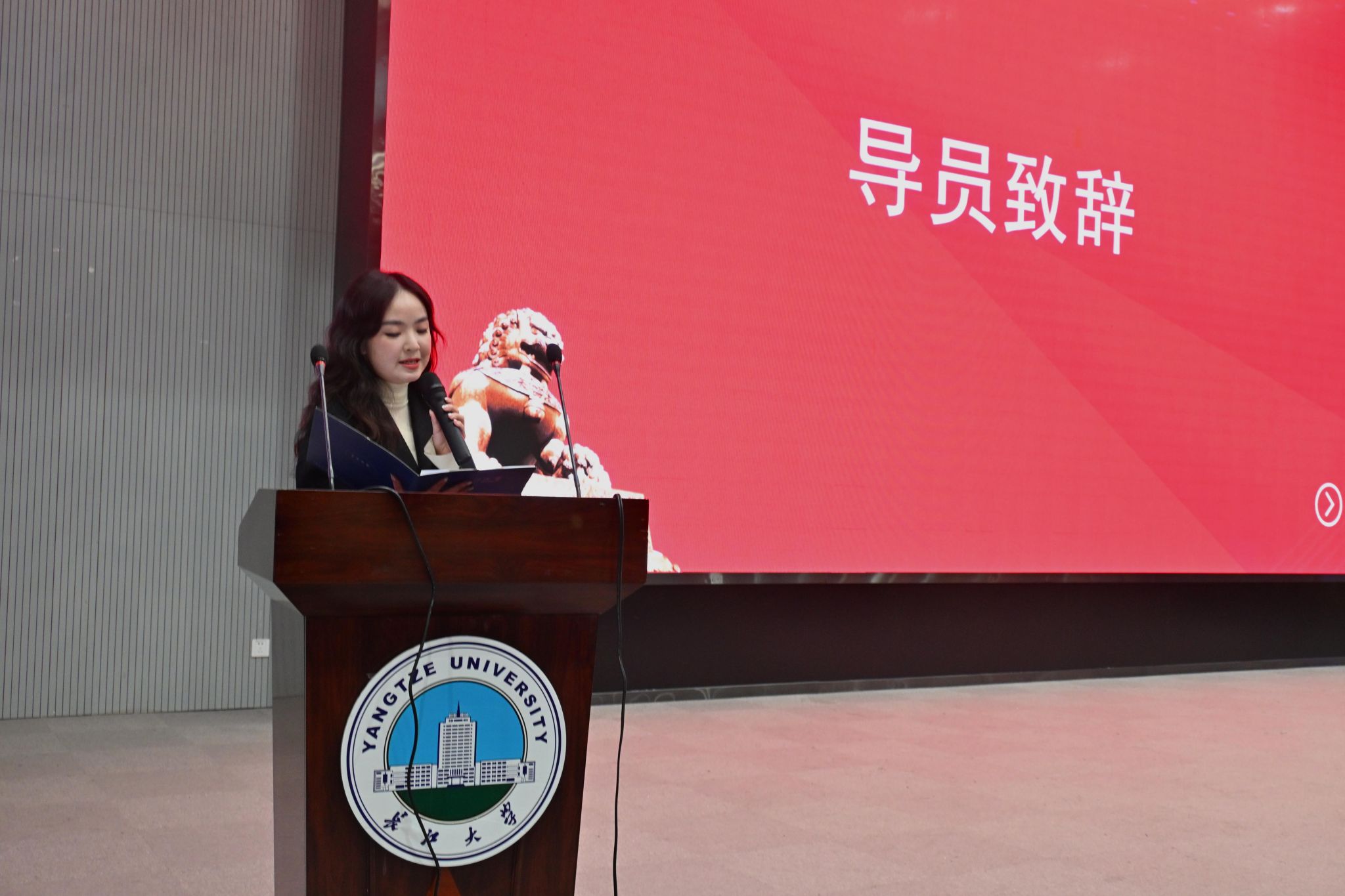 在热烈的掌声中,青支队队长李纯翔、学生会代表杨林聪、辩论队代表谢子俊依次登台发言。李纯翔分享了志愿服务中的暖心感悟与成长收获,杨林聪以此次成立为契机,郑重表达了全心全意为同学服务的决心,谢子俊则凭借清晰的逻辑与深刻的思考,展现了辩论队思辨求真的精神风采。辅导员艾思含随后登台致辞,言语恳切、指引方向,如冬夜明灯般温暖有力,她寄语全体成员在未来的工作中找准定位、履职尽责,交出不负青春、不负学院的亮眼答卷。