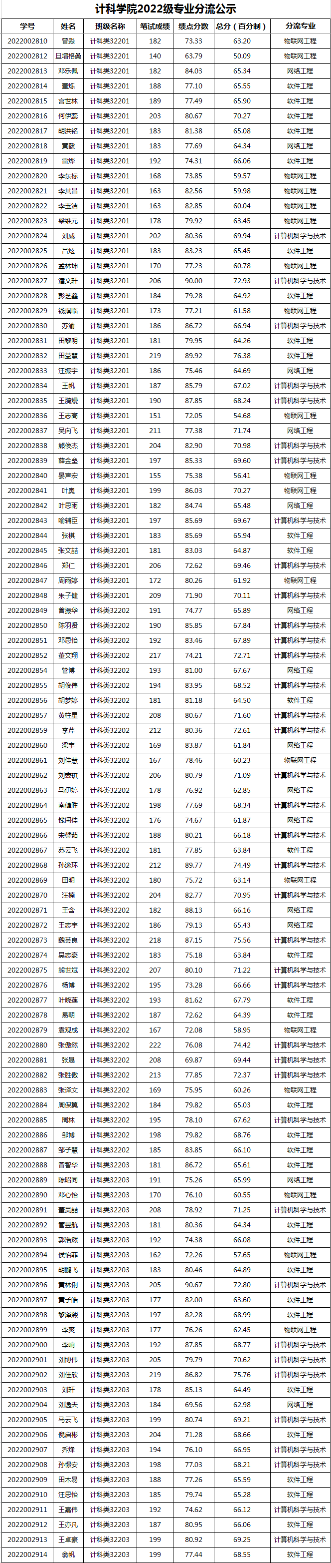 永利集团y234552022级专业分流结果公示