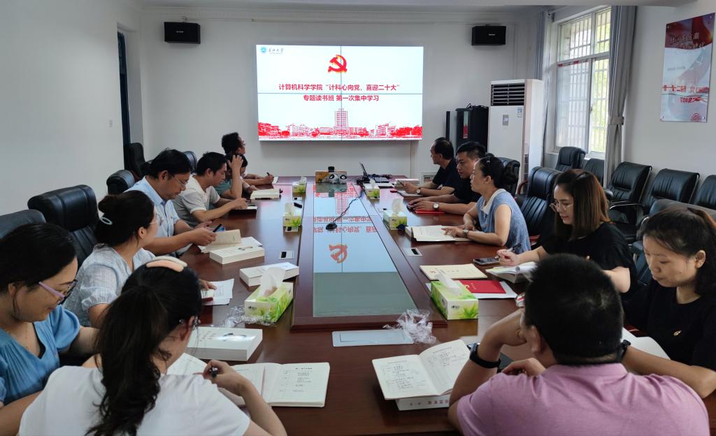 为学习贯彻落实习近平总书记重要讲话精神,强化党员干部政治理论水平,提升其履职尽责能力,学院党委开展“计科心向党,喜迎二十大”专题读书班活动。9月15日下午,读书班在4教307会议室开展第一次集中学习。学院党委成员、学院科级及以上干部、支部书记及委员参加了此次活动。